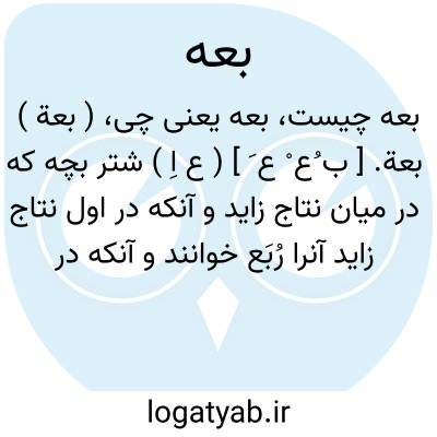 ( بعة ) بعة. [ ب ُع ْ ع َ ] ( ع اِ ) شتر بچه که در میان نتاج زاید و آنکه در اول نتاج زاید آنرا رُبَع خوانند و آنکه در آخر نتاج زایدآنرا هُیع. ( منتهی الارب ) ( ناظم الاطباء ) ( آنندراج ).