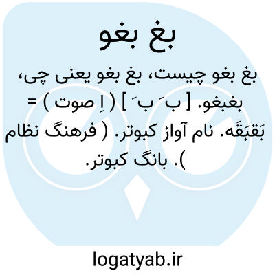 بغبغو. [ ب َ ب َ ] ( اِ صوت ) = بَقبَقَه. نام آواز کبوتر. ( فرهنگ نظام ). بانگ کبوتر.