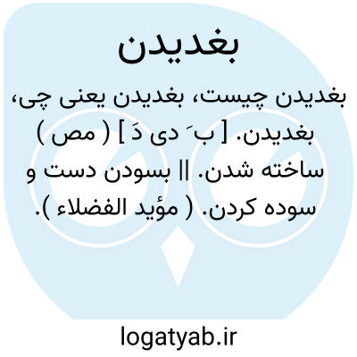 بغدیدن. [ ب َ دی دَ ] ( مص ) ساخته شدن. || بسودن دست و سوده کردن. ( مؤید الفضلاء ).
