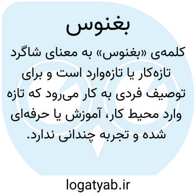 کلمه‌ی «بغنوس» در فارسی به معنای شاگرد تازه‌کار یا تازه‌وارد است و برای توصیف فردی به کار می‌رود که تازه وارد محیط کار، آموزش یا حرفه‌ای شده و تجربه چندانی ندارد. این واژه بیشتر در متون قدیمی فارسی و منابع لغوی مانند دزی آمده و کاربرد آن برای اشاره به افراد کم‌تجربه یا مبتدی بوده است. در ادبیات و متون تاریخی، از بغنوس برای توصیف شاگردان و نوآموزانی استفاده شده که تازه وارد یک حرفه یا هنر شده‌اند و هنوز مهارت کامل را کسب نکرده‌اند. این واژه می‌تواند در زمینه‌های آموزشی، هنری، حرفه‌ای یا حتی نظامی به کار رود و نشان‌دهنده مرحله آغازین یادگیری و کسب تجربه باشد. معنای استعاری آن نیز می‌تواند به تازه‌کار بودن در هر زمینه‌ای اطلاق شود، نه صرفاً محدود به آموزش رسمی. از نظر معنایی، بغنوس با واژه‌هایی مانند نوآموز، شاگرد تازه‌کار، مبتدی و تازه‌وارد هم‌معنی است. این واژه در مکالمات روزمره کمتر استفاده می‌شود و بیشتر در متون تاریخی و لغوی دیده می‌شود.