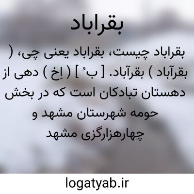 ( بقرآباد ) بقرآباد. [ ب ُ ] ( اِخ ) دهی از دهستان تبادکان است که در بخش حومه شهرستان مشهد و چهارهزارگزی مشهد واقع است و 139 تن سکنه دارد. آب آن از قنات. محصول آنجا غلات، بن شن. شغل اهالی آن زراعت، مالداری است. ( از فرهنگ جغرافیایی ایران ج 9 ).