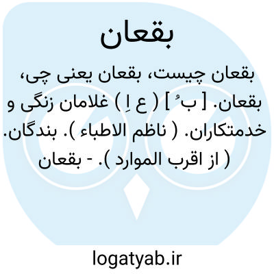 بقعان. [ ب ُ ] ( ع اِ ) غلامان زنگی و خدمتکاران. ( ناظم الاطباء ). بندگان. ( از اقرب الموارد ).