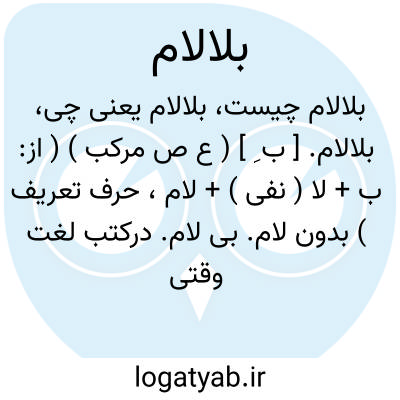 لغت نامه دهخدا بلالام. [ ب ِ ] ( ع ص مرکب ) ( از: ب + لا ( نفی ) + لام، حرف تعریف ) بدون لام. بی لام. درکتب لغت وقتی بلالام گویند، یعنی بی حرف تعریف الف ولام. ( یادداشت مرحوم دهخدا ). بدون ال. بی الف ولام. و رجوع به بِلا شود.