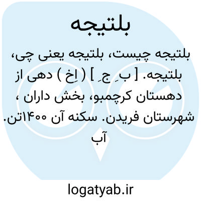 بلتیجه. [ ب ِ ج ِ ] ( اِخ ) دهی از دهستان کرچمبو، بخش داران، شهرستان فریدن. سکنه آن 1400تن. آب آن از رودخانه و قنات و محصول آن غلات و حبوب و سیب زمینی است. ( از فرهنگ جغرافیایی ایران ج 10 ).