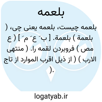 ( بلعمة ) بلعمة. [ ب َ ع َ م َ ] ( ع مص ) فروبردن لقمه را. ( منتهی الارب ) ( از ذیل اقرب الموارد از تاج ).