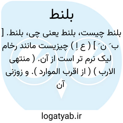 بلنط. [ ب َ ن َ ] ( ع اِ ) چیزیست مانند رخام لیک نرم تر است از آن. ( منتهی الارب ) ( از اقرب الموارد ). و زوزنی آن را به معنی عاج آورده است. ( از اقرب الموارد ).