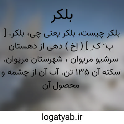 بلکر. [ ب َ ک ِ ] ( اِخ ) دهی از دهستان سرشیو مریوان، شهرستان مریوان. سکنه آن 135 تن. آب آن از چشمه و محصول آن غلات و لبنیات و توتون است. ( از فرهنگ جغرافیایی ایران ج 5 ).