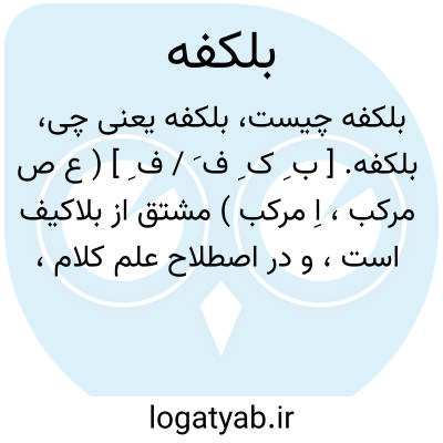 بلکفه. [ ب ِ ک ِ ف َ / ف ِ ] ( ع ص مرکب، اِ مرکب ) مشتق از بلاکیف است، و در اصطلاح علم کلام، قائل بودن به وجود محسوس است بر روش اشاعره در بحث رؤیت. ( از برهان ) ( از آنندراج ) ( از فرهنگ فارسی معین ):