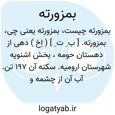 بمزورته. [ ب ِ ت ِ ] ( اِخ ) دهی از دهستان حومه، بخش اشنویه شهرستان ارومیه. سکنه آن 197 تن. آب آن از چشمه و محصول آن غلات و توتون است. ( از فرهنگ جغرافیایی ایران ج 4 ).