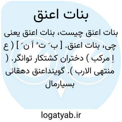 بنات اعنق. [ ب َ ت ُ اَ ن َ ] ( ع اِ مرکب ) دختران کشتکار توانگر. ( منتهی الارب ). گوینداعنق دهقانی بسیارمال بوده است. ( لسان العرب ). || اسبان منسوب به سوی اعنق. ( منتهی الارب ). گویند اعنق نام اسبی است. ( لسان العرب ). فحلی است از خیل عرب و بنات اعنق بدان منسوب است. ( لسان العرب ).