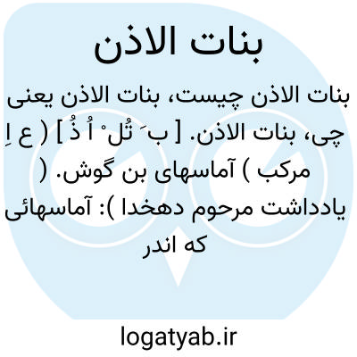 بنات الاذن. [ ب َ تُل ْ اُ ذُ ] ( ع اِ مرکب ) آماسهای بن گوش. ( یادداشت مرحوم دهخدا ): آماسهائی که اندر بن گوش افتد طبیبان آن را به تازی بنات الاذن گویند. ( ذخیره خوارزمشاهی ).