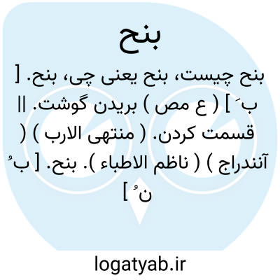 بنح. [ ب َ ] ( ع مص ) بریدن گوشت. || قسمت کردن. ( منتهی الارب ) ( آنندراج ) ( ناظم الاطباء ).