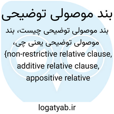 {non-restrictive relative clause, additive relative clause, appositive relative clause} [زبان شناسی] بندی که توضیحات بیشتر و اضافی درباره هستۀ اسمی خود ارائه می کند و در درون آن ضمیری هم مرجع با آن هسته یافت می شود