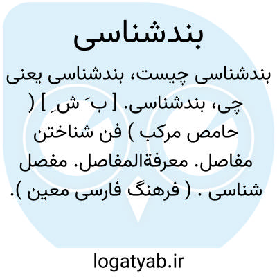 لغت نامه دهخدا بندشناسی. [ ب َ ش ِ ] ( حامص مرکب ) فن شناختن مفاصل. معرفةالمفاصل. مفصل شناسی. ( فرهنگ فارسی معین ).