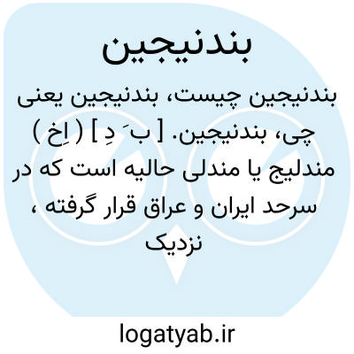 بندنیجین. [ ب َ دِ ] ( اِخ ) مندلیج یا مندلی حالیه است که در سرحد ایران و عراق قرار گرفته، نزدیک کرمانشاه واقع در صدکیلومتری مشرق مایل بشمال بغداد. ( فرهنگ فارسی معین ).