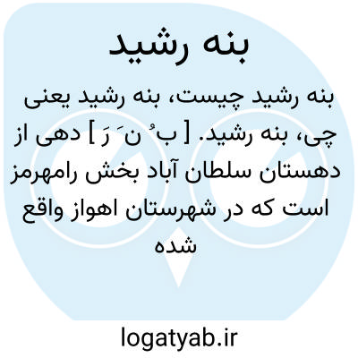 بنه رشید. [ ب ُ ن َ رَ ] دهی از دهستان سلطان آباد بخش رامهرمز است که در شهرستان اهواز واقع شده است. دارای 300 تن سکنه است. ( از فرهنگ جغرافیائی ایران ج 6 ).