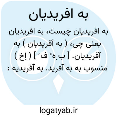 ( به آفریدیان ) به آفریدیان. [ ب ِه ْ ف َ ] ( اِخ ) منسوب به به آفرید. به آفریدیه: پرکدر. بر کنار مرورود نهاده است و او را قهندز است استوار و اندروی گبرکانند و ایشان را به آفریدیان خوانند. ( حدود العالم چ دانشگاه تهران ص 94 ). رجوع به به آفرید شود.