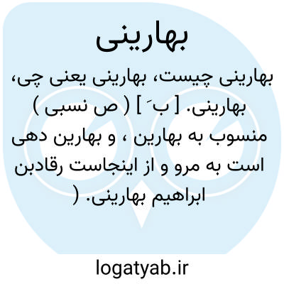 بهارینی. [ ب َ ] ( ص نسبی ) منسوب به بهارین، و بهارین دهی است به مرو و از اینجاست رقادبن ابراهیم بهارینی. ( الانساب سمعانی ) ( لباب الانساب ).