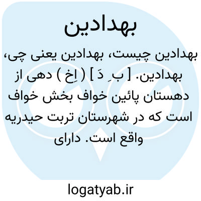 بهدادین. [ ب ِ دَ ] ( اِخ ) دهی از دهستان پائین خواف بخش خواف است که در شهرستان تربت حیدریه واقع است. دارای 533 تن سکنه است. ( از فرهنگ جغرافیائی ایران ج 9 ).