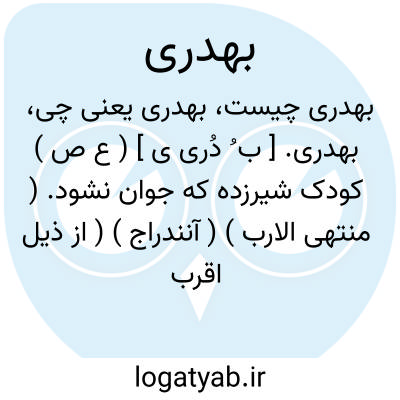 بهدری. [ ب ُ دُری ی ] ( ع ص ) کودک شیرزده که جوان نشود. ( منتهی الارب ) ( آنندراج ) ( از ذیل اقرب الموارد ) ( ناظم الاطباء ).