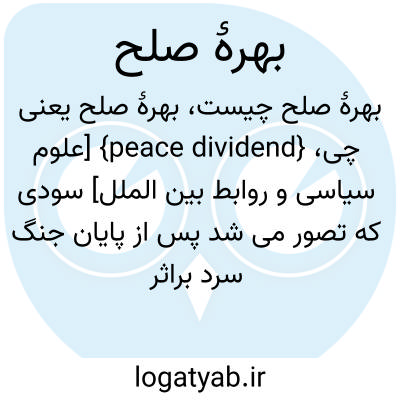 {peace dividend} [علوم سیاسی و روابط بین الملل] سودی که تصور می شد پس از پایان جنگ سرد براثر کاهش هزینه های مسابقۀ تسلیحاتی عاید جامعۀ جهانی شود