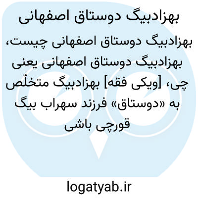[ویکی فقه] بهزادبیگ متخلّص به «دوستاق» فرزند سهراب بیگ قورچی باشی شاعر ادیب خطاط، در اصفهان می باشد.