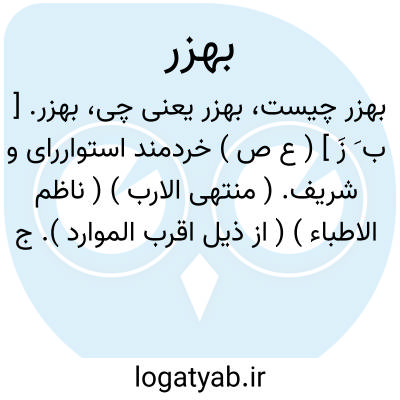 بهزر. [ ب َ زَ ] ( ع ص ) خردمند استواررای و شریف. ( منتهی الارب ) ( ناظم الاطباء ) ( از ذیل اقرب الموارد ). ج، بَهازِر. ( ناظم الاطباء ).