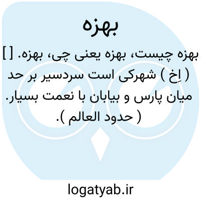 بهزه. [ ] ( اِخ ) شهرکی است سردسیر بر حد میان پارس و بیابان با نعمت بسیار. ( حدود العالم ).