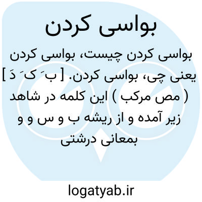 بواسی کردن. [ ب َ ک َ دَ ] ( مص مرکب ) این کلمه در شاهد زیر آمده و از ریشه ب و س و و بمعانی درشتی کردن و بزرگی کردن و آزار دادن مردم است: و آن جماعت که از همه بواسی میکردند هر یک با سر پیشه اول خود رفتند. ( تاریخ غازان خان ص 318 ).
