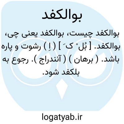 لغت نامه دهخدا بوالکفد. [ بُل ْ ک َ ] ( اِ ) رشوت و پاره باشد. ( برهان ) ( آنندراج ). رجوع به بلکفد شود.