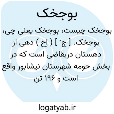 بوجخک. [ ج َ ] ( اِخ ) دهی از دهستان دربقاضی است که در بخش حومه شهرستان نیشابور واقع است و 196 تن سکنه دارد. ( از فرهنگ جغرافیائی ایران ج 9 ).