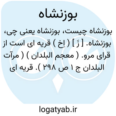 بوزنشاه. [ زَ ] ( اِخ ) قریه ای است از قرای مرو. ( معجم البلدان ) ( مرآت البلدان ج 1 ص 298 ). قریه ای است از قرای مرو که در چهارفرسخی مرو قرار دارد و اکنون خراب شده است. ( لباب الانساب ).