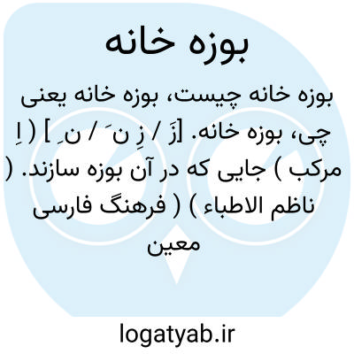 لغت نامه دهخدا بوزه خانه. [زَ / زِ ن َ / ن ِ ] ( اِ مرکب ) جایی که در آن بوزه سازند. ( ناظم الاطباء ) ( فرهنگ فارسی معین ): گر از بوزه خانه رسد بوزه کم چو بوزه کف خویش ساید بهم.ملاطغرا ( آنندراج ).