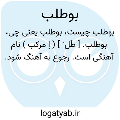 بوطلب. [ طَل َ ] ( اِ مرکب ) نام آهنگی است. رجوع به آهنگ شود.