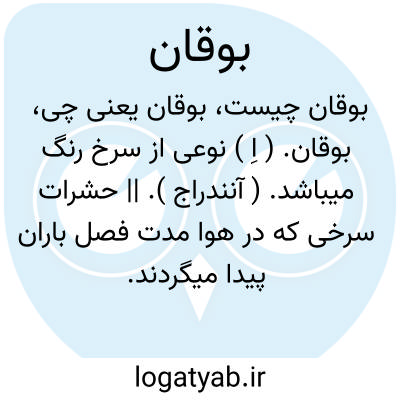 بوقان. ( اِ ) نوعی از سرخ رنگ میباشد. ( آنندراج ). || حشرات سرخی که در هوا مدت فصل باران پیدا میگردند. ( ناظم الاطباء ).