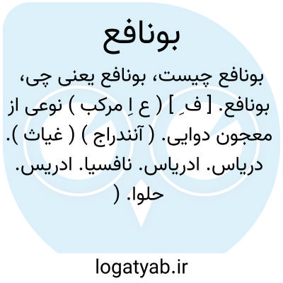 بونافع. [ ف ِ ] ( ع اِ مرکب ) نوعی از معجون دوایی. ( آنندراج ) ( غیاث ). دریاس. ادریاس. نافسیا. ادریس. حلوا. ( یادداشت بخط مؤلف ). || مأخوذ از تازی. می و شراب. ( ناظم الاطباء ) ( اشتینگاس ). رجوع به ابونافع شود.