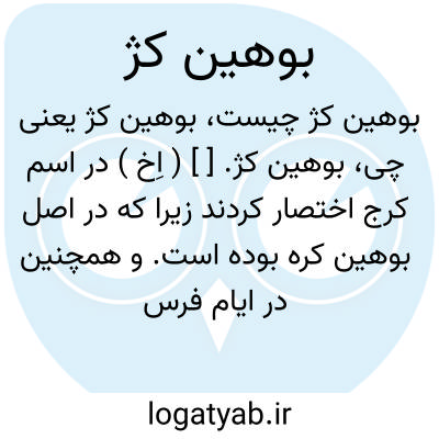 بوهین کژ. [ ] ( اِخ ) در اسم کرج اختصار کردند زیرا که در اصل بوهین کره بوده است. و همچنین در ایام فرس آنرا بوهین کره خوانده اند. یعنی خرمنگاه کرج. ( تاریخ قم ص 23 ).
