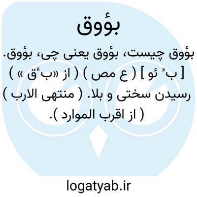 بؤوق. [ ب ُ ئو ] ( ع مص ) ( از «ب ٔق » ) رسیدن سختی و بلا. ( منتهی الارب ) ( از اقرب الموارد ).