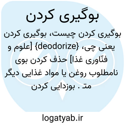 {deodorize} [علوم و فنّاوری غذا] حذف کردن بوی نامطلوب روغن یا مواد غذایی دیگر متـ. بوزدایی کردن