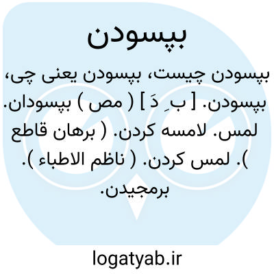 بپسودن. [ ب ِ دَ ] ( مص ) بپسودان. لمس. لامسه کردن. ( برهان قاطع ). لمس کردن. ( ناظم الاطباء ). برمجیدن. برمخیدن. || اندودن. طلا کردن. ( ناظم الاطباء ). و رجوع به بسودن و پسودن شود.