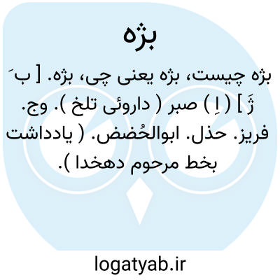 بژه. [ ب َ ژَ ] ( اِ ) صبر ( داروئی تلخ ). وج. فریز. حذل. ابوالحُضض. ( یادداشت بخط مرحوم دهخدا ).