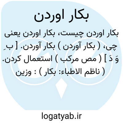 ( بکار آوردن ) بکار آوردن. [ ب ِ وَ دَ ] ( مص مرکب ) استعمال کردن. ( ناظم الاطباء: بکار ):