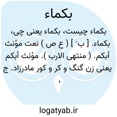 لغت نامه دهخدا بکماء. [ ب َ ] ( ع ص ) نعت مؤنث أبکم. ( منتهی الارب ). مؤنث أبکم یعنی زن گنگ و کر و کور مادرزاد. ج، بُکم و بُکمان. ( ناظم الاطباء ).