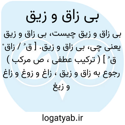 لغت نامه دهخدا بی زاق و زیق. [ ق ُ / زاق ْ ق ُ ] ( ترکیب عطفی، ص مرکب ) رجوع به زاق و زیق، زاغ و زوغ و زاغ و زیغ شود.