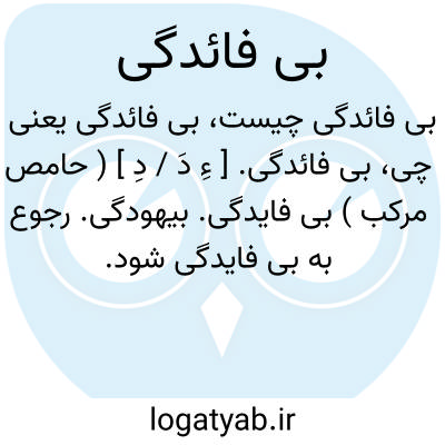 بی فائدگی. [ ءِ دَ / دِ ] ( حامص مرکب ) بی فایدگی. بیهودگی. رجوع به بی فایدگی شود.