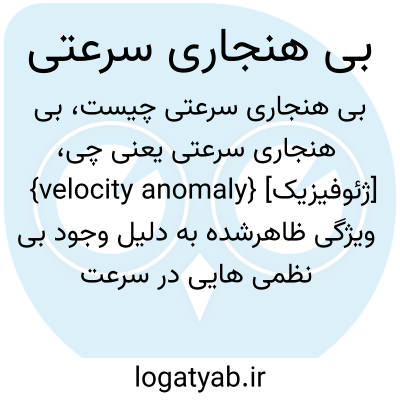 {velocity anomaly} [ژئوفیزیک] ویژگی ظاهرشده به دلیل وجود بی نظمی هایی در سرعت