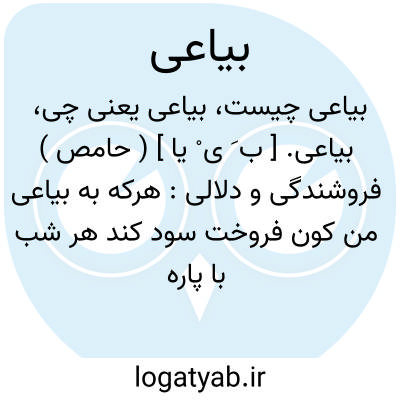 لغت نامه دهخدا بیاعی. [ ب َ ی ْ یا ] ( حامص ) فروشندگی و دلالی: هرکه به بیاعی من کون فروخت سود کند هر شب با پاره کیر.سوزنی.