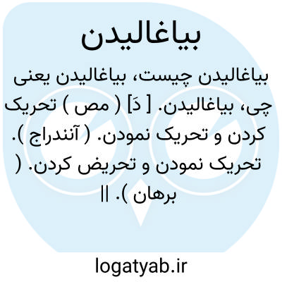 بیاغالیدن. [ دَ] ( مص ) تحریک کردن و تحریک نمودن. ( آنندراج ). تحریک نمودن و تحریض کردن. ( برهان ). || آمیختن و برغلانیدن، یعنی اغوا نمودن. ( غیاث ) ( آنندراج ). || جنبانیدن. ( غیاث ). رجوع به آغالیدن شود.
