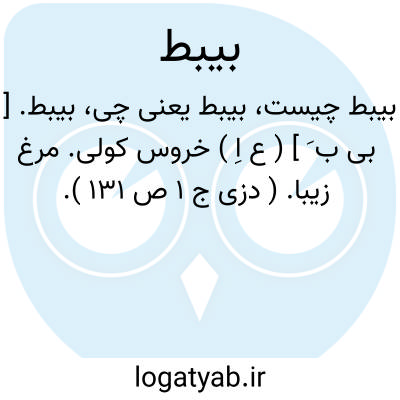 بیبط. [ بی ب َ ] ( ع اِ ) خروس کولی. مرغ زیبا. ( دزی ج 1 ص 131 ).