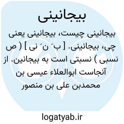 بیجانینی. [ ب َ ن َ نی ] ( ص نسبی ) نسبتی است به بیجانین. از آنجاست ابوالعلاء عیسی بن محمدبن علی بن منصور صوفی بیجانینی. ( لباب الانساب ).